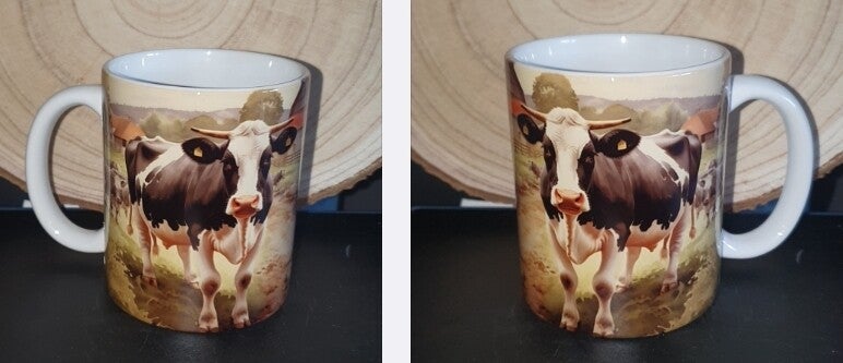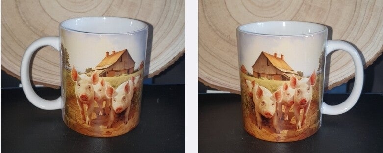 Ce mug unique capture la beauté de la vie à la ferme avec un design réaliste mettant en avant une vache majestueuse, cochon etc.... au cœur d’un paysage rural apaisant. 🌾